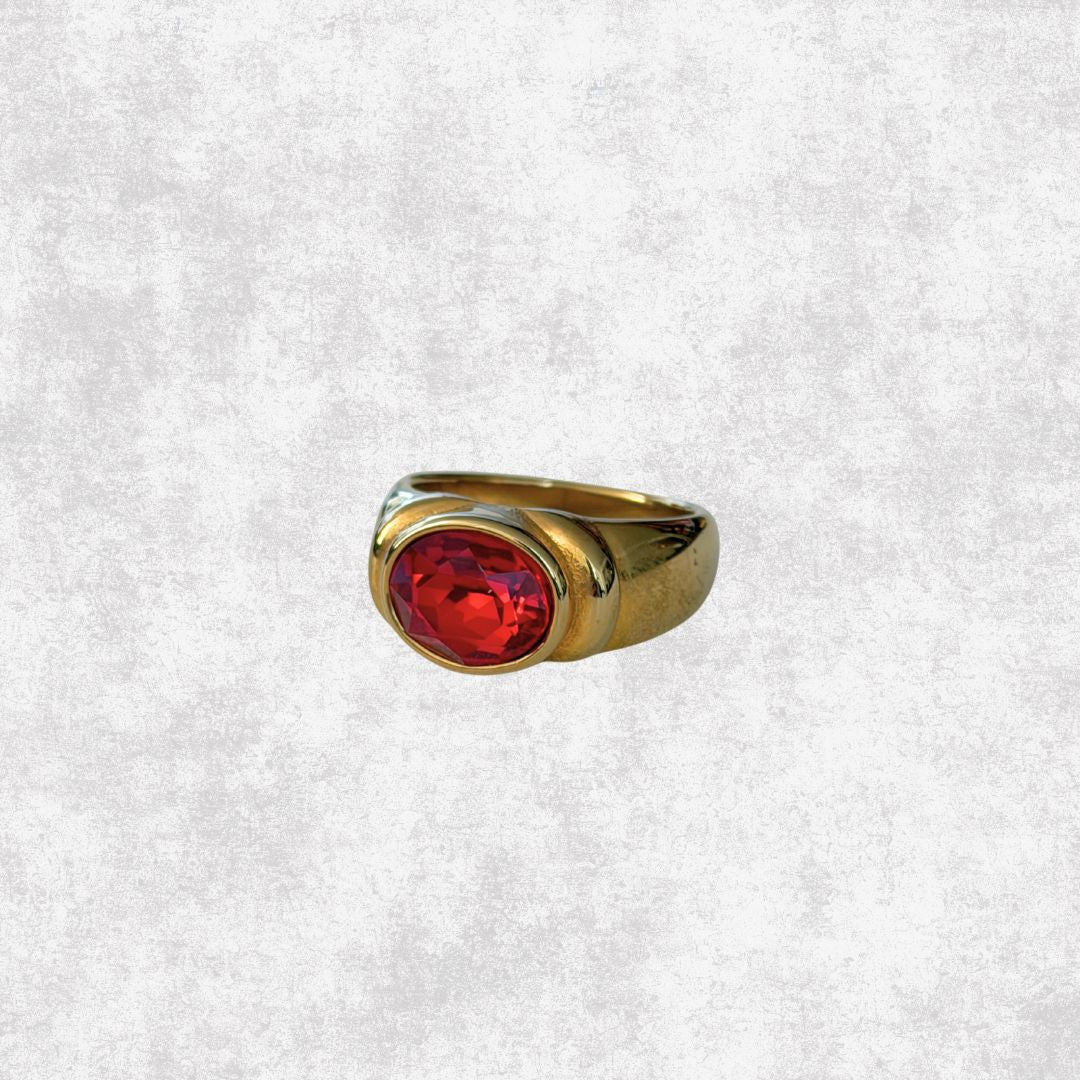 Anillo piedra roja, acero inoxidable, dorado talla 7 gruesos