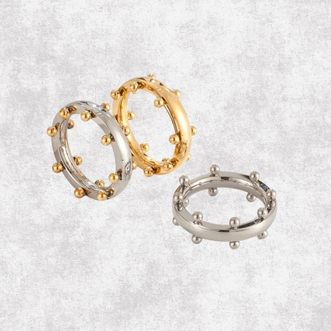 anillo, acero inoxidable, bolitas