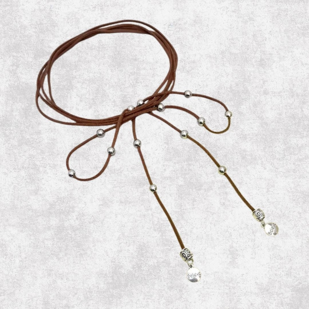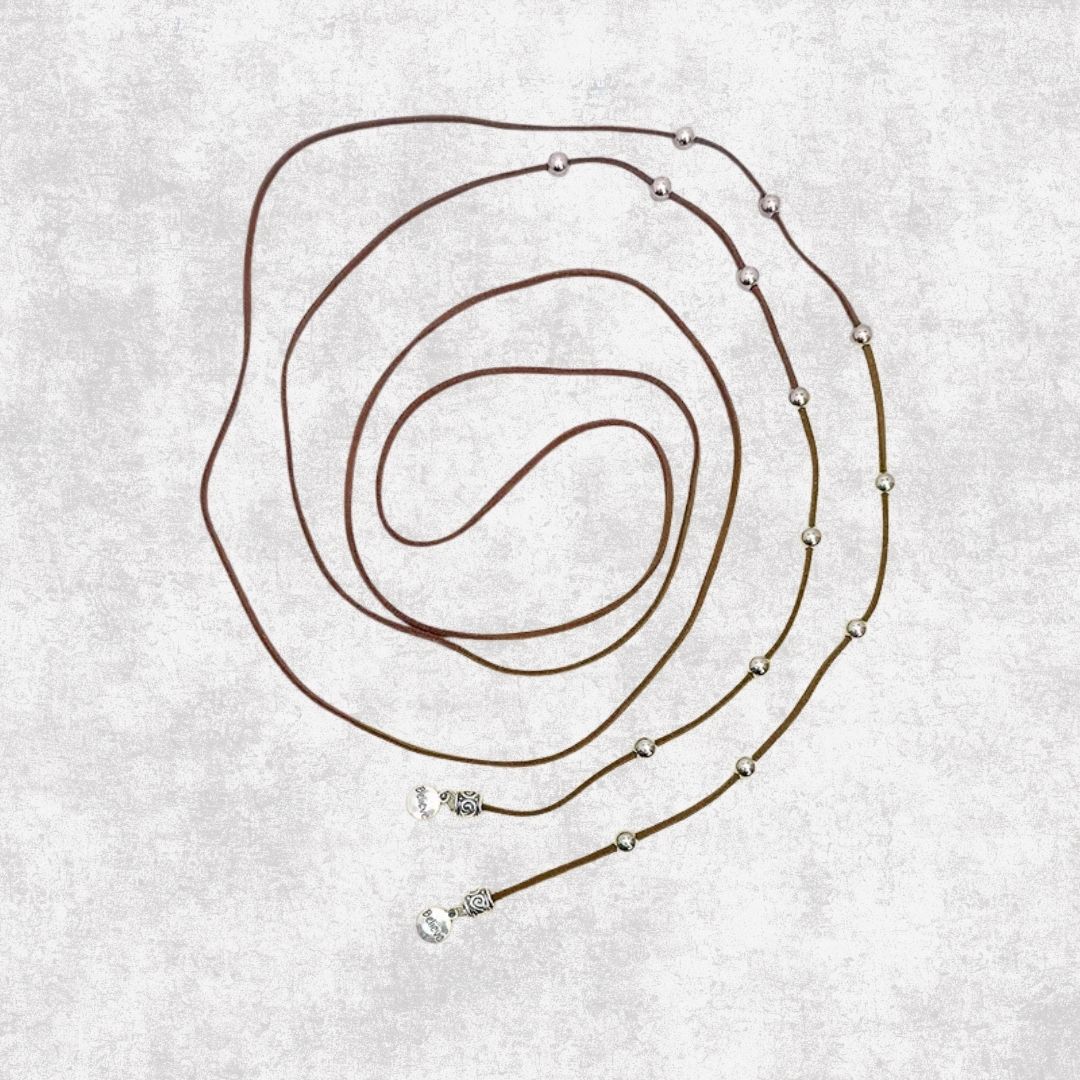 Collar Cuero Rojo con cuentitas, multiformas